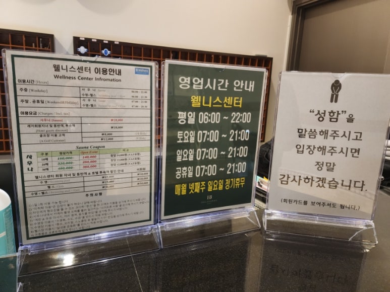 다양한 행사도 많이 진행하더라고요. 우리가 집중할 건 웰니스센터! 호텔 인터불고는 숙박객뿐 아닌 주변 원주 주민분들도 사용할 수 있도록 문턱을 낮췄더라고요. 당연히, 일반 헬스장에 비하면 비싼 가격인 건 맞지만 서비스 및 시설 그리고 사우나에 수영장까지! 이 모든 걸 이용할 수 있다고 생각하니 썩 괜찮은 가격인 거 같더라고요 ㅎㅎ