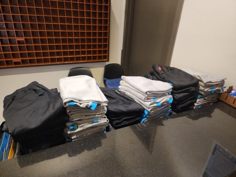 카운터 옆에 사이즈별로 운동복도 준비되어 있습니다. 직원분께서 물론 친절히 먼저 잘 챙겨주십니다 🙂