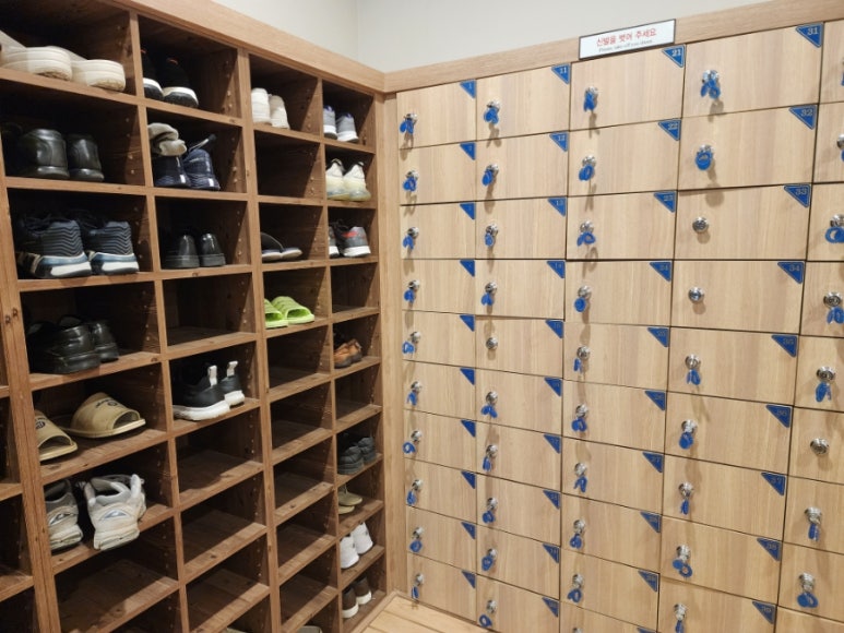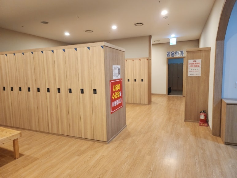 사우나 한켠엔 편하게 쉴 수 있는 공간도 마련되어 있고요. 개인락카와 공용락카존도 준비되어 있었습니다.