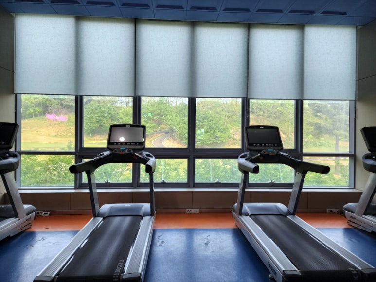 러닝머신에서 뛰고 있으면 딱 보이는 전경입니다. 크~ 푸릇하니 정말 좋더라고요. 힘든 거 생각 안 나고 하염없이 바라보며 러닝 할 수 있었습니다.