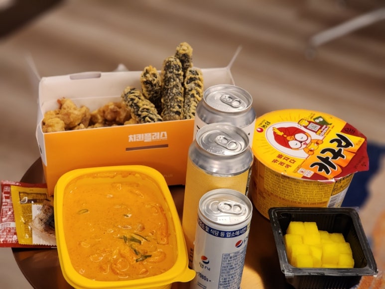 아니!! 리조트라 그런지 배달이 되더라고요!! ㅋㅋ 배민 진짜 매우 칭찬합니다 ㅋㅋ 배민에서 로제 떡볶이랑 치킨세트 시켰고 CU 편의점에서 맥주 한잔 사서 먹으니 그렇게 꿀맛일 수가 없습니다 ㅠㅠ ㅋㅋㅋ