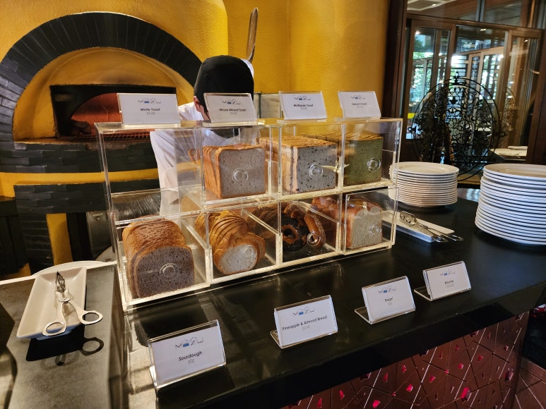 Mozu의 감동 마지막 다섯 번째 포인트! 요 식빵 선택하면 저 화덕에서 뜨~끈 하게 구워줍니다. 우리나라에서 보기 귀한 저 화덕으로 조식당에서 식빵 구워주는데 쓰인다뇨! ㅋㅋ 정말 놀라울 따름입니다.