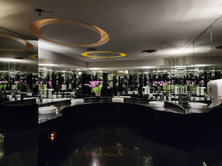 화장실도 정말 고급 지고 멋지더라고요. 라운지 오시는 분들은 한 번쯤 들러보실만합니다. 생화와 더불어 세면대에 휴지 대신 손수건이 비치되어 있는 게 정말 인상 깊었습니다.